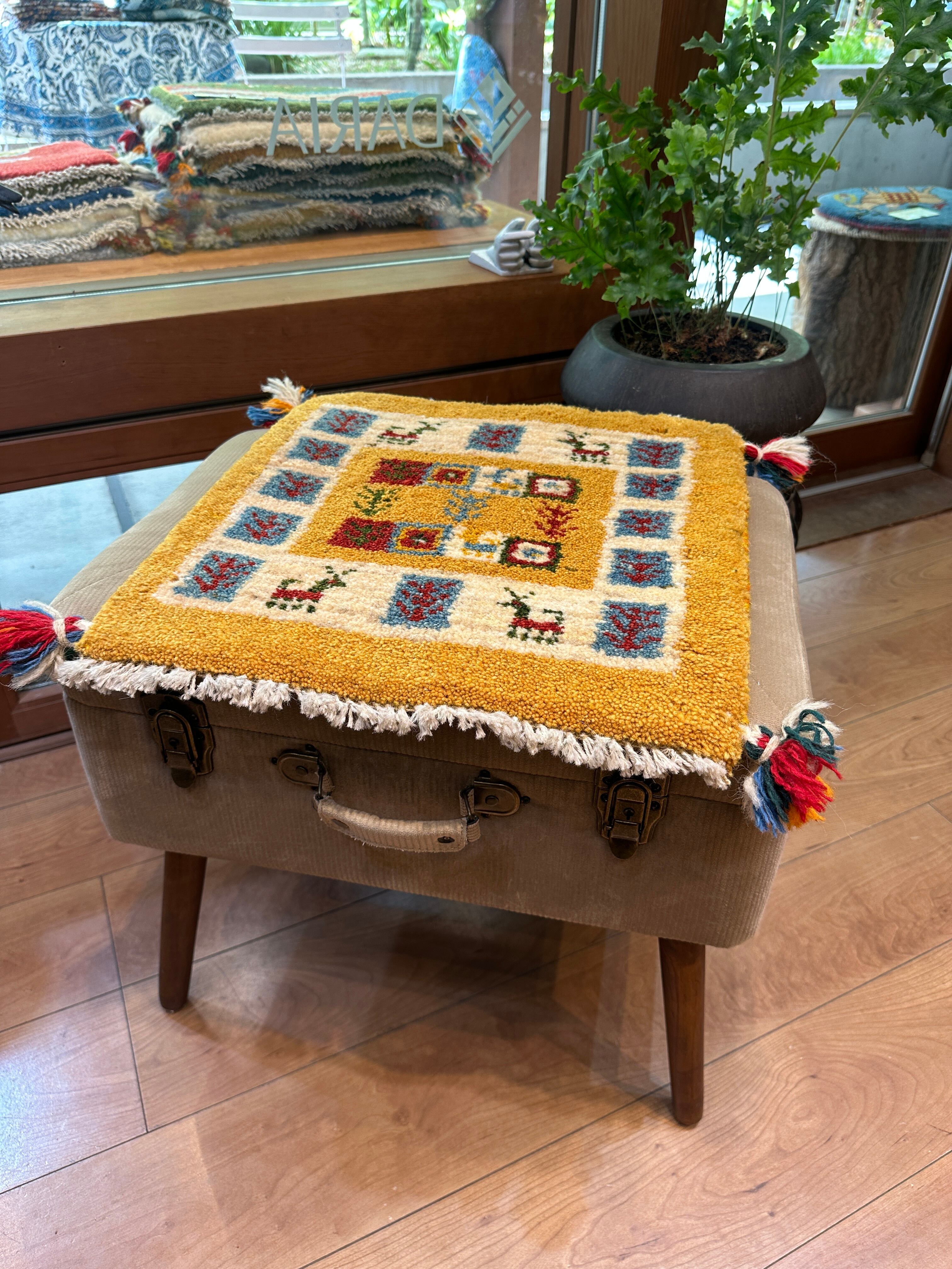 丁寧に手織りで作られたチェアマットです。